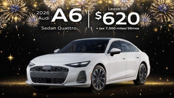 2026 Audi A6 Sedan Quattro: VIN: WAU15CFN0TN021851 Closed-end financing available through 2/02/2026 for a new, unused 2026 Audi A6 Sedan Quattro with automatic transmission on approved credit to highly qualified customers by Audi Financial Services through participating dealerships. Lease offer only eligible to customers residing in AL, AK, AZ, AR, CA, CO, CT, DE, FL, GA, HI, ID, IL, IN, IA, KS, KY, LA, ME, MD, MA, MI, MN, MS, MO, MT, NE, NV, NH, NJ, NM, NY, NC, ND, OH, OK, OR, PA, RI, SC, SD, TN, TX, UT, VT, VA, WA, WV, WI, WY. Monthly lease payment based on MSRP of $68,220 and destination charges, less a suggested dealer contribution resulting in a capitalized cost of $64,250 Excludes tax, title, license, options, and dealer fees. No security deposit required. Due at signing amount of $10,309 includes down payment of $6,822 and inceptions. All tax, title, government fees, acquisition fees, bank fees, vehicle registration fees and $1195 dealer doc fee are additional Your payment will vary based on final negotiated price. At lease end, lessee is responsible for disposition fee of $499, 0.25/mile in excess of 7500 miles and excessive wear and use. Offer not valid in Puerto Rico. See your Audi dealer for details or, for general product information, call 1-800-FOR-AUDI. © 2024 Audi of America, Inc. Using Special rates with no Audi credit rebates. Customer bonus applied toward MSRP and is not redeemable for cash. Offer not valid in Puerto Rico. See dealer for details.